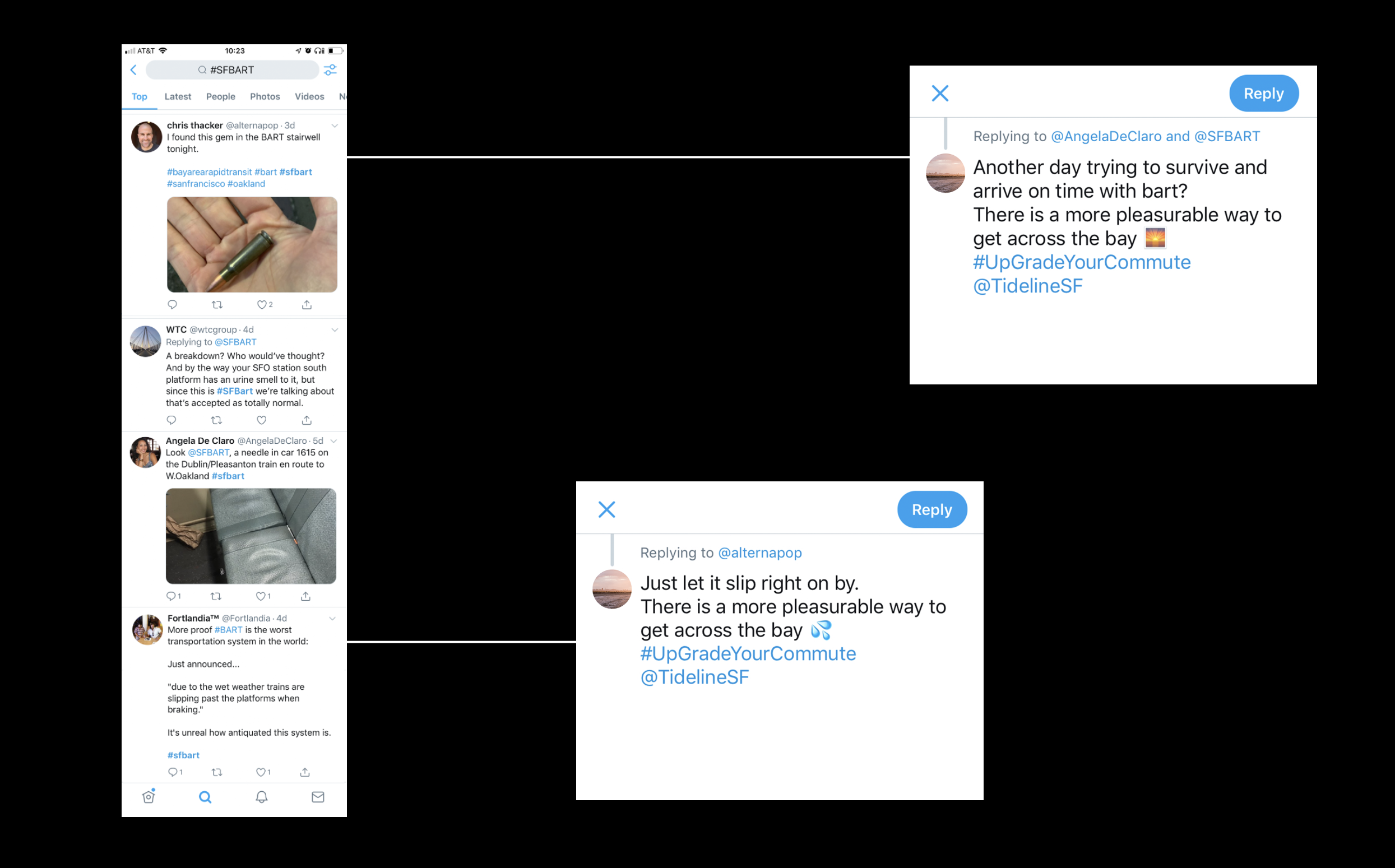 My friends at Tideline asked if I could help introduce their ferry as a commute option for San Francisco's East Bay residents. With a limited budget, my suggestion was to juxtapose the frustrating moments of commuting with the relaxing and scenic reality of Tideline. This campaign uses print and social media to target commuters with a clear message—it's time to upgrade your commute.